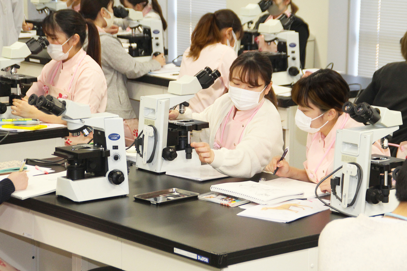 梅村教授が担当する「動物病理学」は、様々な疾病が組織や臓器にもたらす変化を学び、病態について理解する科目です。「獣医師が下した診断に基づき、愛玩動物看護師は病態を正しく把握し、適切な看護計画を立て、実行します。そのためには病理学の他にも薬理学、臨床検査学など動物医療全般の知識も不可欠です。また、動物医療の高度化が進む中で、動物医療チームの一員として愛玩動物看護師にも高度な知識や技術が求められています。人と動物との共生社会も多種多様に発展し、その中での愛玩動物看護師の役割も大きく期待されています」
