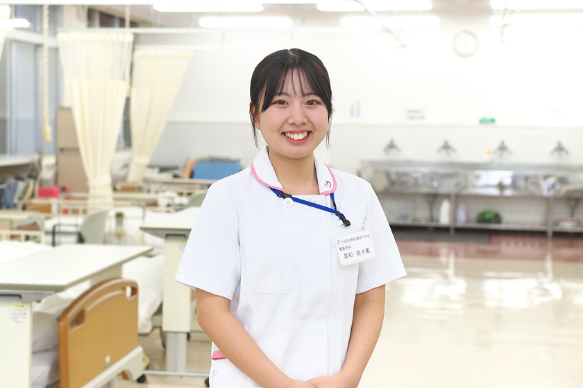 小さい頃に入院した時に優しくしてくれた看護師さんに憧れて、「自分もなりたい」という夢を持ちました。将来は、小児科の看護師として病気で苦しむ子どもたちを支えたいと考えています。もちろんそのためにも、学校や実習先での小児看護をはじめとした分野別の看護をしっかり学んで、実践力を磨いていきたいです。