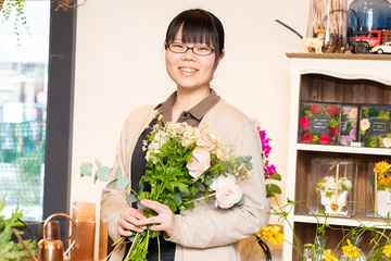 フローリストは四季折々の花たちに囲まれて見た目や香りに癒され、キレイな花たちを使ってお客様の想いをフラワーギフトという形で表現する仕事です。お客様のご要望に合わせて、毎日色も形も用途も全く違うアレンジメントや花束を作ることができるので、とてもやりがいを感じます。完成した商品をお客様にお見せした時、「ステキ!!」と感動していただけた時はとても嬉しく、もっとがんばろうと励みになります。