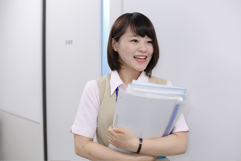 医療法人社団協友会 柏厚生総合病院 勤務/医療秘書科 小児クラークコース/2015年3月卒/高校卒業後に入学した看護系の大学では、学びたい分野を学べず、座学が多いため実技的なことを身につけることができなかった。中退後に医療事務に興味を持ち、在学中に10を超える資格を取得できることや、就職先の多さ、実習等が豊富なカリキュラムに惹かれ、大宮医療秘書福祉専門学校を選んだ。学生時代はビジネスマナー、電話応対、患者対応、言葉遣いからお辞儀の角度に至るまで、細かく指導を受けたと振り返る邑楽さん。総合病院の医療事務として働く今も、学校で学んだことを常に意識しているそう。