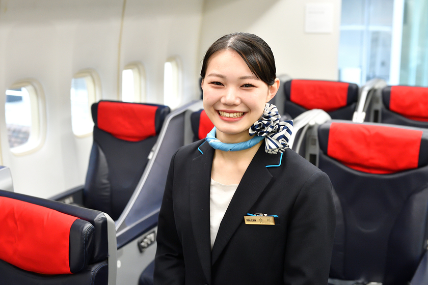 同じ目標を持つ仲間とこの学校で学び、JALから客室乗務員として内定をいただきました(内定情報は2025年12月)。入社をゴールとして捉えずに、これからも資格試験の勉強など、成長のための努力を怠らず、一人でも多くのお客様から「出会って良かった」と思っていただける客室乗務員になることが目標です。