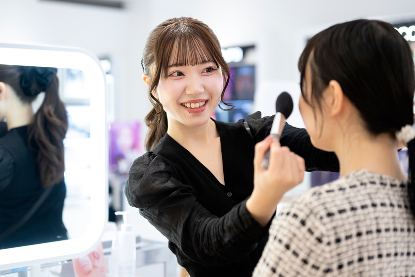 ビューティーカウンセラー(美容部員)として、お客様に商品のご提案やタッチアップ(お客様のお肌にスキンケアやメイクを施すこと)を行っています。接客時の私のモットーは、はい・いいえでは答えられない質問と、はい・いいえで答えられる質問を使い分け、私が話すよりもお客様にたくさんお話いただけるようにして、潜在的なニーズを引き出すこと。その結果、さまざまな商品から最適なものをお客様にご提案できたときは、毎回達成感でいっぱいになります。今後はマネジメントや本部業務にも挑戦し、現場と会社を繋ぐ役割を担いたいです。そのために、日頃から周囲とのコミュニケーションを大切にし、全体を見て行動することを意識しています。