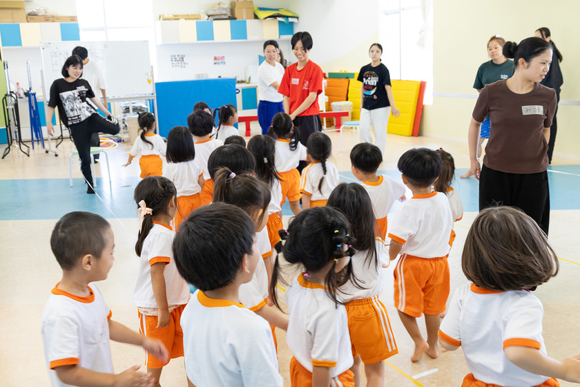 隣接している保育園のこども達に、体育やレクリエーションを通して身体を動かす楽しさを伝えることも