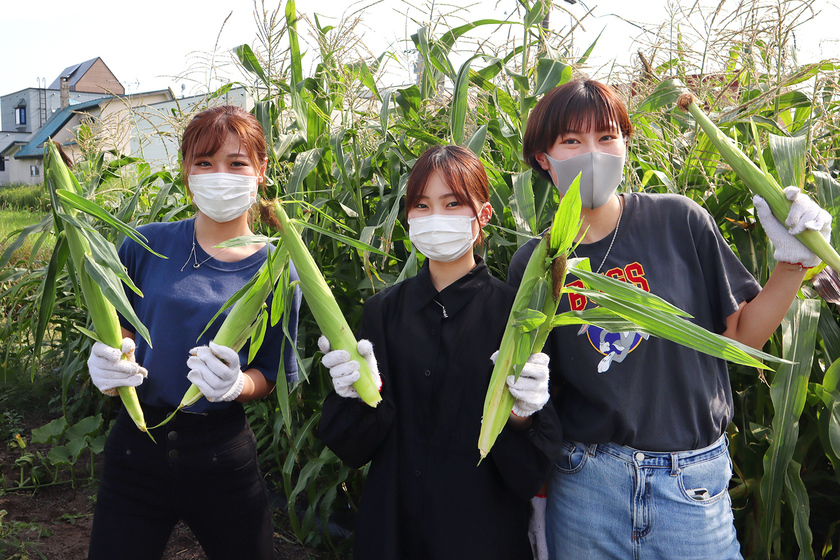農業高校だったので食に関心があり進学。大学農園「WILL FARM」で札幌伝統野菜を栽培・収穫をして、調理実習や食品科学実験、商品開発に繋げているのは実践的でおもしろいです。食品科学の実験で野菜の色素や効果を知ったときは、あらためて「食の大切さ」を実感しました。卒業後は、地域に暮らす人々の食や健康を担える栄養教諭(公務員)を目指したいです。いまは管理栄養士の国家資格取得と公務員試験に向けて勉強中です。