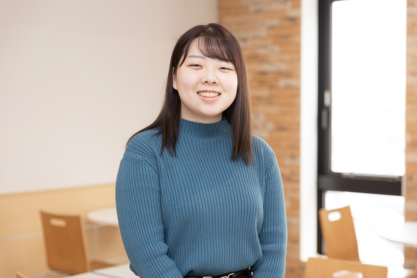 高校生の時、バスケットボール部だったので「レバンガ北海道」の栄養サポートを行うこの大学を志望。プロ選手やユースチームと関わる機会も多く、スポーツ栄養への興味が深まりました。食への学びが深まるにつれ、微生物の働きや効果などにも関心をもち、大学院で食品衛生について研究したいと考えています。海外の栄養事情も知りたいので英語も勉強中。学友会の会長としても活動し、オンラインで学校祭をしたのはいい思い出です。