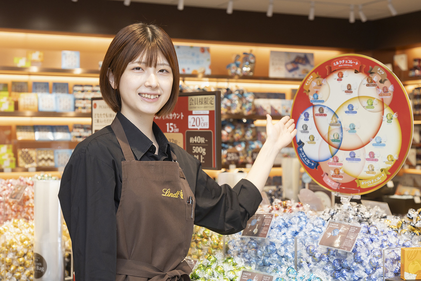 リンツでの仕事は、チョコレートの販売だけでなく、注文を受けたドリンクの作成も担当しながら、お客様にブランドの魅力を直接伝えられることが大きな魅力です。一人ひとりに合わせて商品をおすすめし、「美味しかった」「また来たい」と言っていただけたとき、この仕事を選んでよかったと感じます。チョコレートを通して笑顔を届けられること、そして直接「ありがとう」と言ってもらえることが日々のやりがいです。もっと多くの人にリンツを知ってもらい、笑顔を広げていくことが今の目標であり、将来は学生の頃からの夢である自分のカフェを持つことに向けて、日々経験を積んでいます。