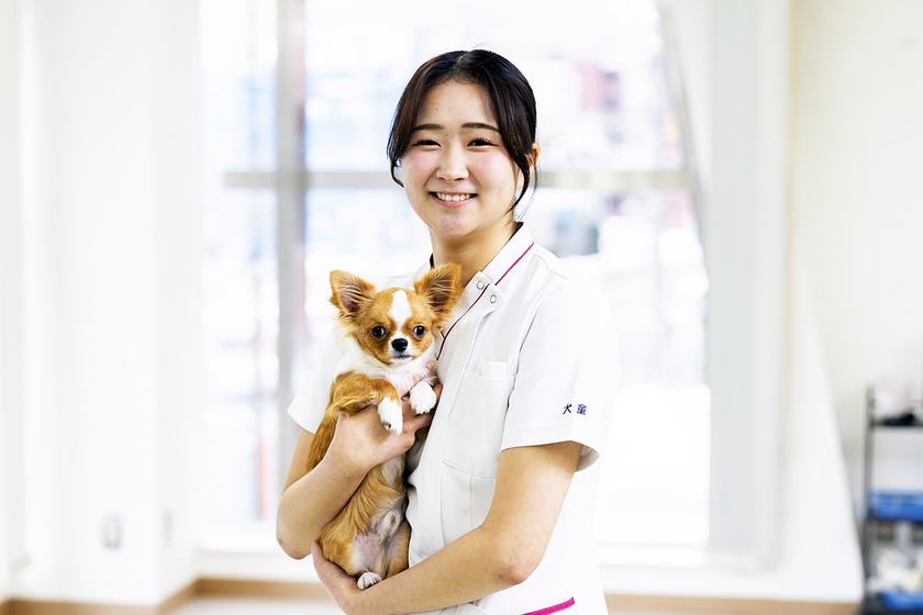 犬や猫などの体の仕組みを知り、診療補助に必要な保定(ほてい)や検査について学んでいます。いままで勉強は得意な方ではありませんでしたが、大好きな犬や動物のことを学べるので勉強が楽しくなりました。動物と人が幸せに暮らせるように、飼い主さんをサポートできる愛玩動物看護師になりたいです。