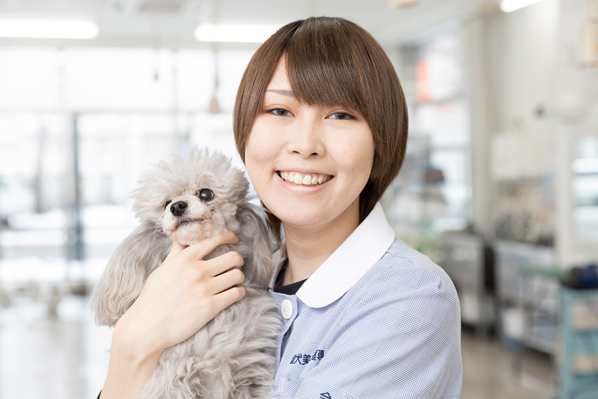 私が大切にしているのは、飼い主さんの要望に応えられるトリミングをして、満足していただくことです。本校では、お辞儀の仕方から言葉遣いまで、接遇マナーもしっかり学べるので、就職しても即戦力として働くことができます。インターンシップで在学中にサロンやペットショップで実習ができるため、現場のイメージを理解してから社会人になれるので安心です。