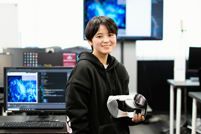 中学の時からYouTubeでゲーム実況をよく見ていました。楽しそうにプレイしている選手と楽しそうな実況、楽しんでいる視聴者。その世界に魅了されました。ゲームを制作する人もきっと楽しんでいる。その中に私も参加したいと思いました。将来はゲームプロデューサーとして人を夢中にさせるゲームを手掛けたいです。