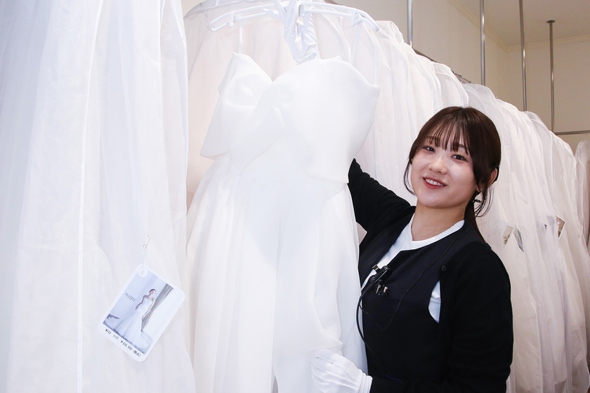 ドレススタイリストとして、新婦様が結婚式で着る大切なお衣裳選びをお手伝いしています。「徳永さんが担当でよかったです」と言っていただけた瞬間は、うれしさで涙が出そうになるほどで、この仕事をしていて本当によかったと感じます。当日はなかなかお会いできないからこそ、「当日も絶対会いたいです!」という言葉をいただけることが、大きなやりがいです。そして将来は、ずっと憧れていた“ドレスを作る側”にも挑戦してみたいと思っています。自分が作ったドレスが、たくさんの新婦様の幸せの一部になると想像すると、ワクワクが止まりません。今は接客が大好きなのでスタイリストとして成長しながら、いつかその夢も叶えたいです。