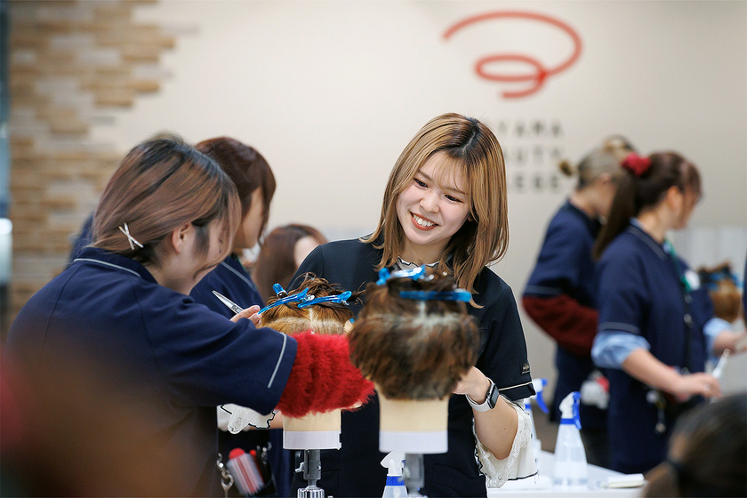やり方や切り方だけを学ぶといった技術だけを教えるのではなく、ゴール(仕上がり)を想定し、そこにたどり着くためのプランを組み立てていく考え方と、イメージを可視化する力を身につけてほしいと思っています。実際の現場(サロン)では、お客様は写真や口頭で希望のヘアスタイルが伝えられ、スタイリストは頭の中で展開図を書きます。展開図とは髪をカットする際の設計図で、授業ではさまざまなスタイルについてたくさん書いていきます。現場では毎回その場で書くことは難しいので、頭の中でイメージします。学生たちに対しても、ただ書けるようになるだけではなく、書かずにイメージでき、それを可視化するための考え方などについて教えています。一人でも多くの学生に、技術だけではなく考え方も身につけていってほしいと思っています。