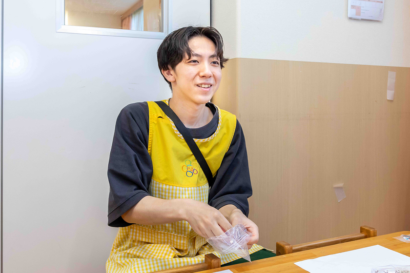 にじいろ保育園江古田の杜勤務/保育科・保育科保育士・幼稚園教諭コース/2025年卒/高校生当時進路に悩んでいた小山さんは、「専門学校で好きなことを学ぶのもいいのでは」という先生の言葉をきっかけに、保育の道を意識するように。上京したいという思いもあり東京で学校を探す中、東京未来大学福祉保育専門学校と出会い、男子学生も多く学びやすい環境に惹かれて入学を決意。実習を重ねるうちに、0歳から年長まで子どもたちの成長を見守れる保育園の魅力を実感し、入学を決めたそうです。これまで学業一筋だった小山さん「これからは仕事だけでなく、趣味や友人との時間も大切にしながら、充実した毎日を過ごしていきたい」とも話してくれました。