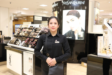 店頭では、まずお客様のお悩みやなりたいイメージについて丁寧にヒアリングしてから、メイクやスキンケアのご提案を行います。多くのお客様が自分のなりたい理想像を持ってご来店されますが、お客様は一人ひとり異なるため、お客様ご自身の理想に近づくためにはどうしたらよいかを常に考えながらアドバイスを行っています。実際にメイクを施す(タッチアップする)際には、ご自宅でお客様が自分でメイクするときにも参考になるよう、コツを含めてご説明します。私の提案による変化で「わあ、こんなにイメージが変わるの!」と喜んでいただけると本当に嬉しいです。