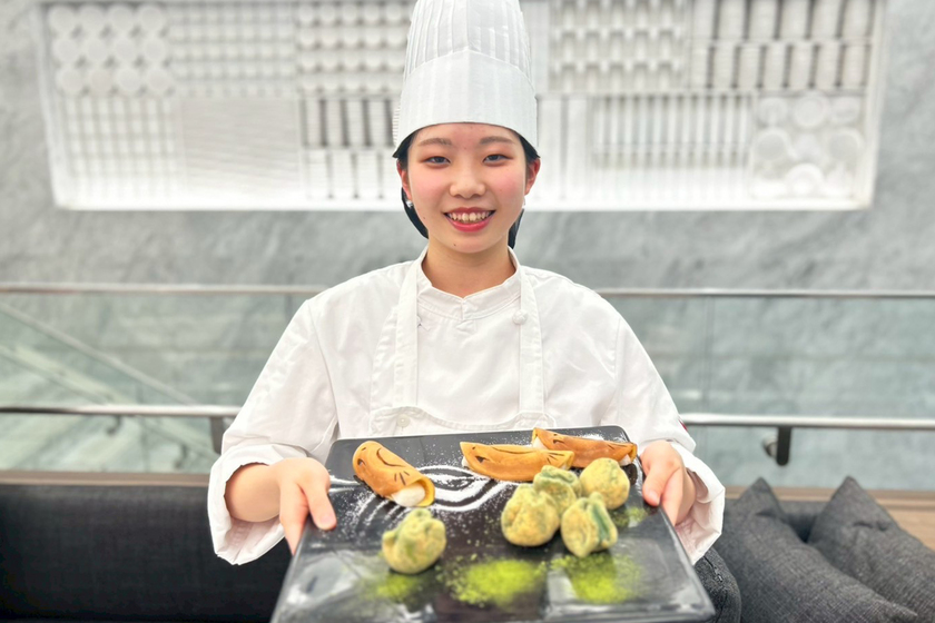 幼少期に両親に連れて行ってもらったお店で光り輝くケーキの数々に魅了されたことがこの道に進むきっかけ。YAMANOTEを選んだのは、実習の豊富さに加えて製菓衛生師の資格取得が目指せるカリキュラムに惹かれたからです。
