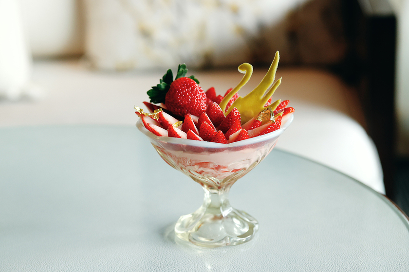 私が調理を担当している「3種の苺パフェ」です