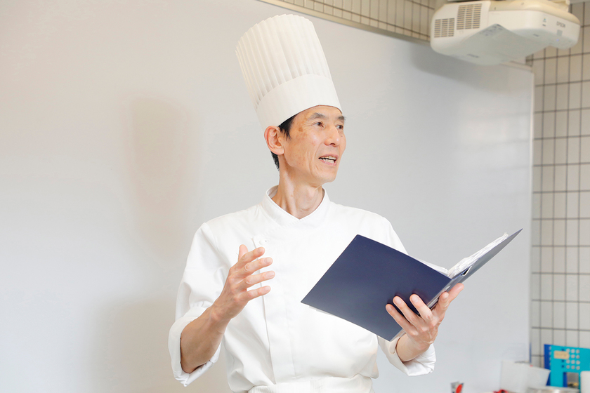 私はフランス料理の調理師からパティシエになった経歴を持っているのですが、どちらにも共通するのは「食」を通して人を幸せな気持ちにできるということです。大きなやりがいを感じる一方で飲食業界の人手不足という問題にも直面していたため、40年近く関わってきた業界への恩返しという意味も込めて人材を育てる側に回ろうと決意しました。教員として大切にしているのは、学生に「お菓子への愛」を持ってもらうことと、現場に出てから求められる知識・技術とともに周囲に目を配りながら率先して行動に移す自発性を身につけてもらうことです。学校の授業においても現場に出ても失敗はつきものですが、それを恐れずに自分から動くように意識していれば同じ失敗はしないようになりますし、それが学生自身の成長の糧になると考えています。