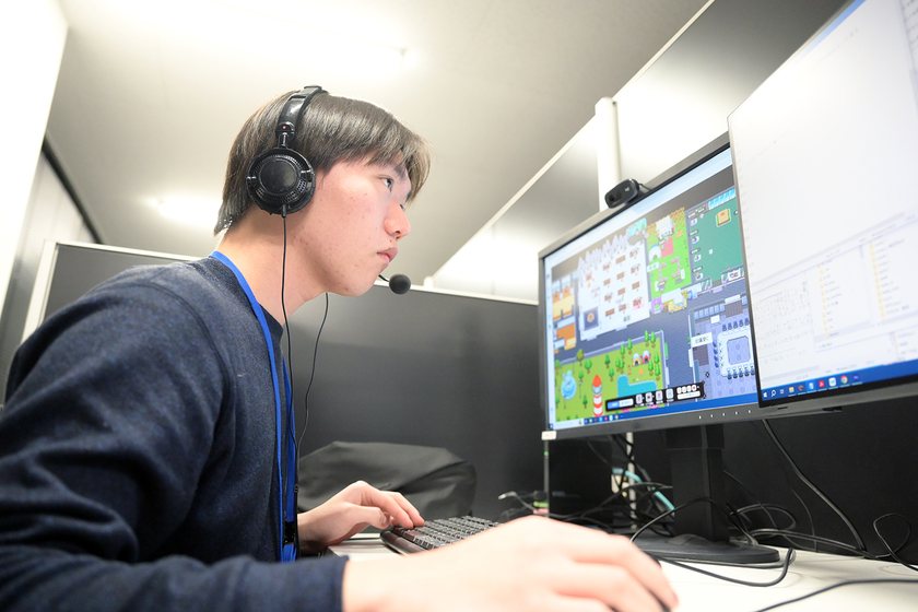 株式会社サンジゲン 立川スタジオ勤務/ゲーム・アニメ3DCG学科(現・CG学科)/2024年卒/3D作品に定評があるとともに、2Dと3DCGを組み合わせた名作も数多く生み出している株式会社サンジゲン。清水さんはコンポジットセクションに所属し、コンポジット(アニメ撮影)の仕事に携わる。アニメ撮影によって仕上がりの映像に格段の違いが出ることに感銘を受け、この仕事を志した。「自分なりのアイデアやセンスが発揮できる仕事でやりがいがあります」と語る。元々アニメが好きだった清水さん。今も平日1、2本、土日2、3本のアニメ鑑賞を欠かさない。「最新アニメや劇場版もチェックしています。大好きなアニメを仕事にでき、毎日がとても充実しています」