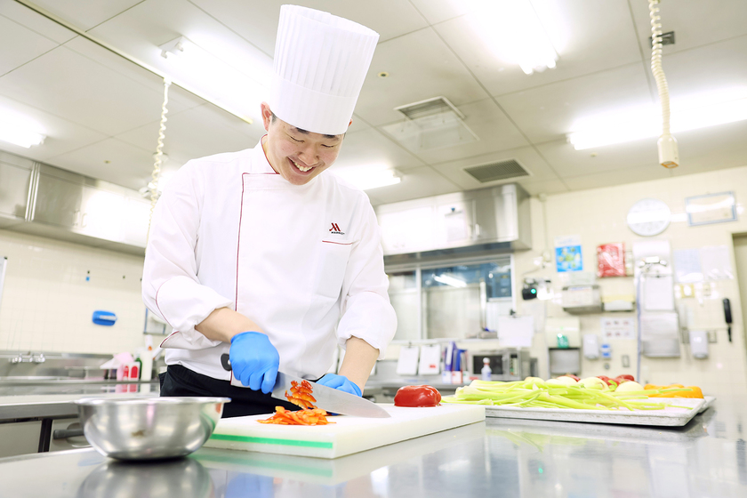 名古屋マリオットアソシアホテルの「ガルドマンジェ」という部署で、宴会や婚礼のオードブルやアミューズの仕込み、盛り付け、ブッフェ対応などを担当しています。仕事の中で一番のやりがいは、同じ仕込みを繰り返す中で「前より確実に上達している」と自分自身で実感できる瞬間です。技術が身についていることを目で見て感じられるのは、大きな励みになります。また、料理を提供した際にお客様から直接お褒めの言葉をいただけると、「もっと良い料理を届けたい」と前向きなエネルギーが湧いてきます。料理を通して人を笑顔にできることが、この仕事の一番の魅力です。