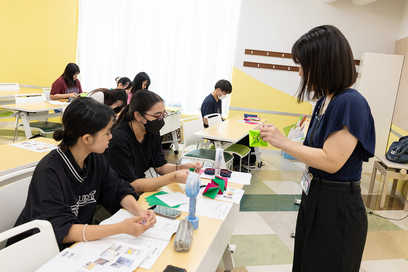 「保育実践演習」では、実際に園で行う遊びや制作などの活動を考え、模擬保育を行います。園行事の成り立ちを理解することで気をつけるべき点を実践的に学び、さらにはその課題への対応として保育士や保育の現場、地域、社会に求められることは何かを多様な視点から考察する力を養います。演習では、クラスメイトがこどもの役をするので、現場を想定した力を身につけることができます。