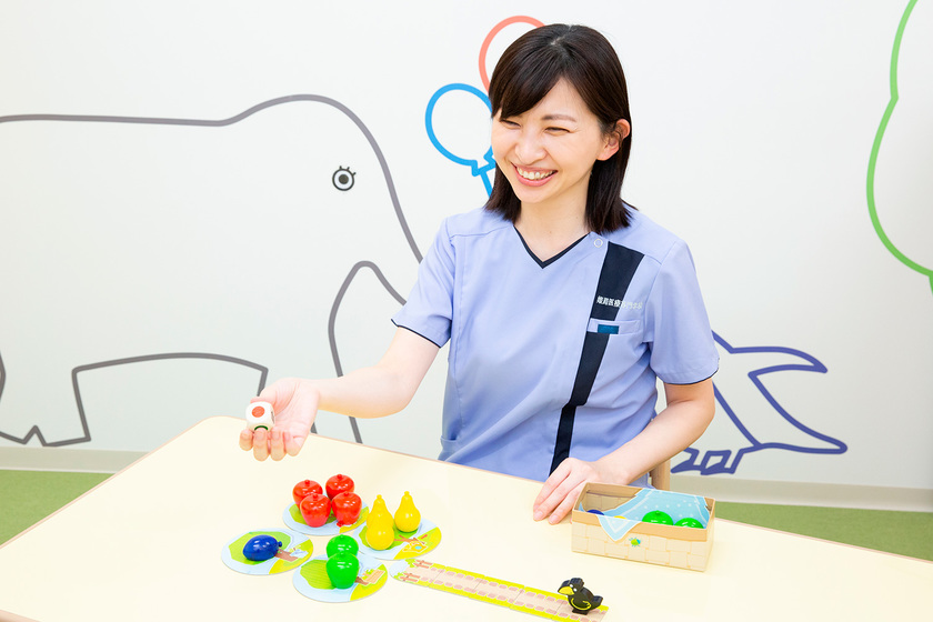 私は子どもの発達支援を専門にしています。子どもとのリハビリでは、人と関わろうとする意欲を引き出すことが、コミュニケーションやことばを育てるスタートになります。リハビリのときに心掛けていることは「この子が今何がしたいのか」「今後どうなっていきたいのか」を想像すること。ことばで表現していることと、実際考えていることは必ずしも同じとは限りません。子どものことをよく観察して、ことばだけでなく表情や仕草、態度から思いを読み取ることが大事。そして、お子さんとじっくり向き合いながら「できた!」を聞ける瞬間は何よりの喜びです。