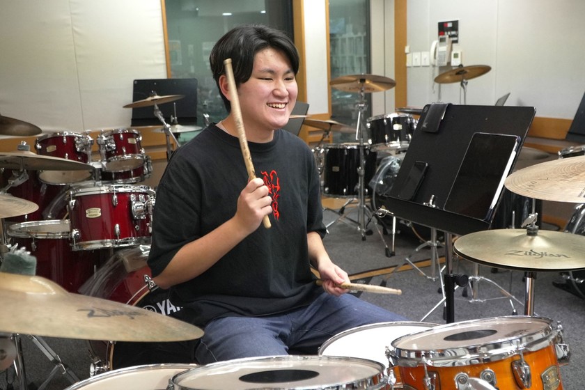 ドラムの基礎から学び、先生たちが現場で行っている事などプロのドラマーになるために必要な事を一から学んでいます。またLPW(ライブアンサンブル)という授業でライブでのパフォーマンス対応力、盛り上げ方を学び、ドラマーとしてのレベルを上げています。