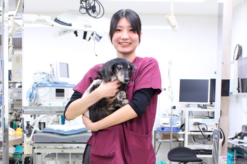 何か問題を抱えて来院した犬や猫に対して、私たち愛玩動物看護師は治療のサポートを行っています。治療を終えて動物たちが元気に帰っていくところや、元気になった姿を見てうれしそうにしている飼い主さんを目にしたとき、この仕事のやりがいを感じます。専門的な知識を身につけた愛玩動物看護師は、動物医療から社会に貢献できる仕事であると考えています。「動物が好き」という気持ちだけではなく、動物とそのご家族の幸せを医療の面から支えていきたいという思いで、動物たちや飼い主さんと日々向き合っています。