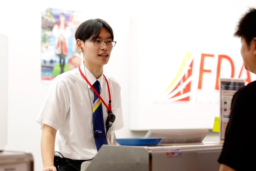 株式会社エスエーエス 福岡空港事業所・旅客勤務/観光振興学科(航空クラス) 卒/2024年卒/入社後の研修を経て、空港グランドスタッフとしての勤務を開始した塩川さん。先輩方の背中を見ながら勉強の毎日だといいます。「研修を経て実務を経験することで、一つひとつの業務や動作の意味、つながりに対する理解がより一層深まったように感じます。常に『次』を意識した行動ができるようになってきました」。現在は国内線の旅客ハンドリングを主務としていますが、いずれは国際線での業務も担当するそう。台湾在住時に身につけた中国語や台湾語など言語力を強みに仕事の幅を広げていきたいと語ってくれました。