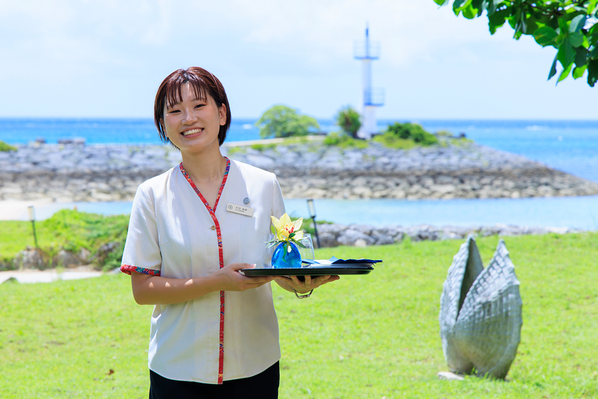 観光施設で活躍できる人材、観光客をおもてなしできる人材の育成を目指す「リゾート観光・ホテルエアライン科」。1年次では観光の基礎知識を楽しみながら学び、専門コース(ホテル&エアラインコース、ダイビング・アウトドア観光コース)に分かれて、より高度な専門知識や技術を身につけていきます。授業の一つ「レストランサービス演習」では、ホテルレストランで求められる「質の高いサービススキル」を実践を通して習得。お客様への丁寧な接客、正確なオーダーテイク、料理・飲料の提供方法、立ち居振る舞いといった基本動作を総合的に学びます。併せて、サービスの背景にある礼儀作法やホスピタリティの考え方も学習します。