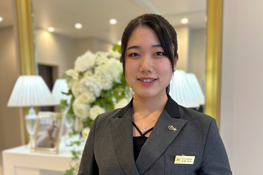 現役で活躍されている先生から、今のブライダル業界について学べることに大きな魅力を感じて、この学校を選びました。オープンキャンパスでは、本物のホテルのような環境に感激し、ここで学びたいと強く思いました。