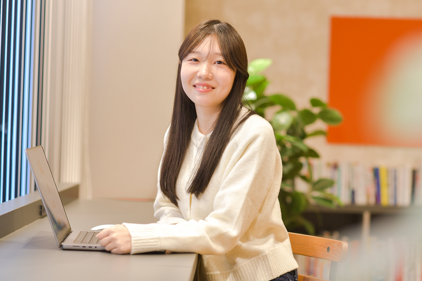 入学当初はデザインの道に進もうと思っていましたが、学んでいるうちにプログラミングの面白さに気づきました。目標は「プログラミングができるデザイナー」になること。デザインに比べてプログラミング力が弱いので、在学中により高い技術を身につけたいです。将来は日本だけでなくグローバルに活躍したいと考えています。