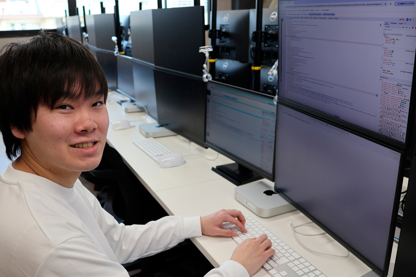 グローバルビジネスソリューション株式会社 勤務/情報技術科/2025年卒/専門学校入学当初はWebデザイナーを目指していたが、学びの中で「作ったものが形として動く」ことに面白さを感じたことや、先生からの後押しがあったことなどから、システムエンジニアの道へ。入社後の研修期間を終え、現在の部署に配属された。「現場のリーダーとして働く先輩の姿がカッコよくて憧れです」。経験を積み、チームやグループをまとめられるようになりたいと話してくれた。