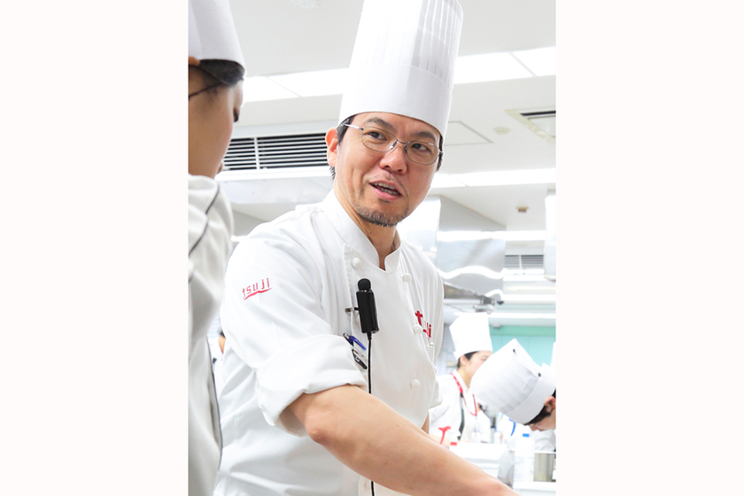 洋菓子担当をしています。私は学生のころに授業で受けた製菓授業『タルトタタン』 がとても印象的で、これまでに見たことがなく、感動したことを覚えています。その体験が今、食の世界に携わるきっかけになっていますが、そのような自身の経験も含め、学生の皆さんにおいしいお菓子づくりを伝えていきたいと思います。