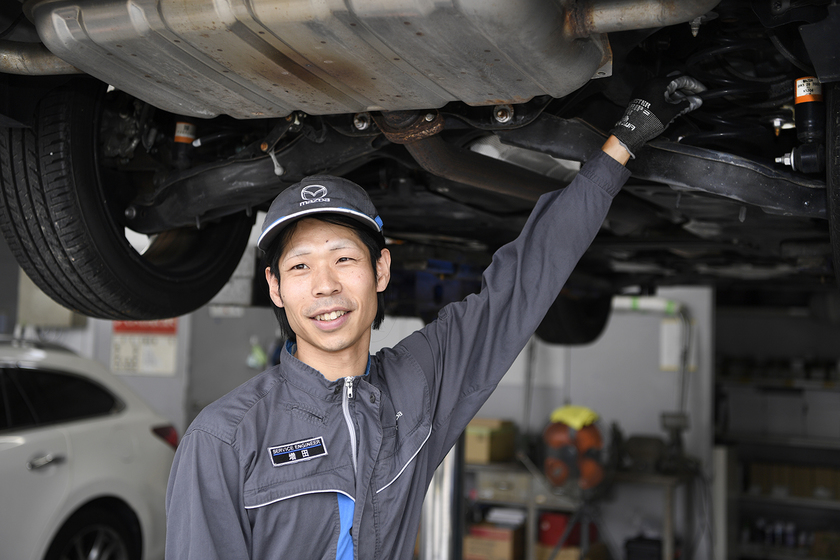 略歴/2017年に大学校1級自動車工学科を卒業後、株式会社神戸マツダに入社し、垂水多聞店に配属。2024年に大久保店に異動を経て現在に至る。