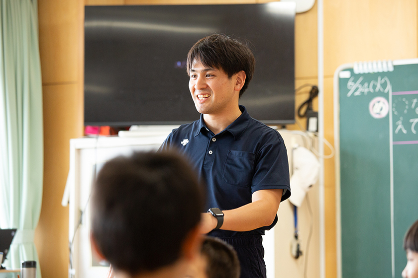 私が教師を目指そうと考えたのは高校生の頃です。当時はバレー部に所属していましたが、一部の精鋭のみを優遇する勝利至上主義が浸透していました。試合に出られなくとも、影で支えている部員も含めた全員がワンチームだと感じていた私は、部の雰囲気になじめず傷つくことも多々ありました。このような経験が、教師を目指す原点になりました。「クラス全員が主役で、皆が笑顔になる学級運営をしたい」という強い思いが、私にはあります。クラスの誰かが傷ついていることがわかったら、「先生は絶対に見捨てない」と児童に伝えています。そうした自身の言葉に責任をもち、児童にしっかり向き合っていきたいと思っています。