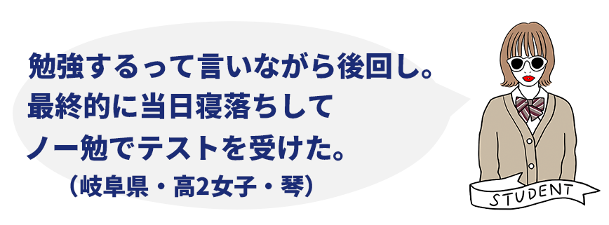 「前回のテストがボロボロだったから取り返そうと思った」(宮城県・高2女子・ぼんちゃん)