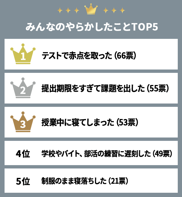 「今年やらかしたことある?」って聞いたら、半数以上の高校生が「……ある。」って回答。生きてると小さいことから大きいことまでやらかしあるよね。