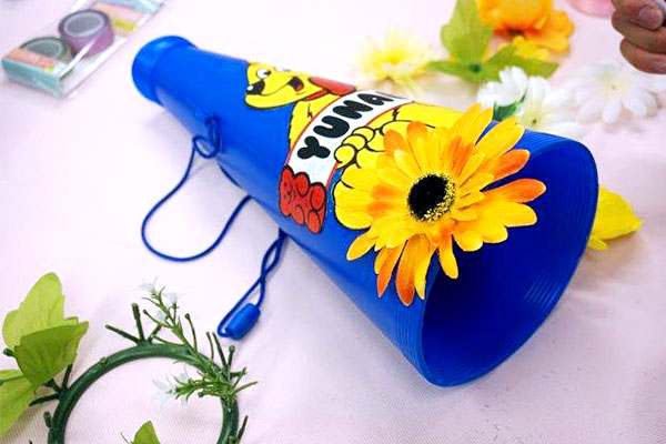 手軽に簡単に華やかなメガホンを作るなら、造花やリボンを使うのがオススメ!