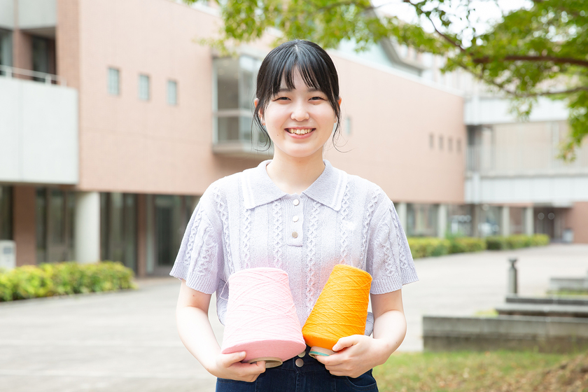 この大学を選んだのは、好きなモノづくりやアパレルデザインを学べる学科があり、学生と先生との距離が近いから。また家庭科教諭の免許が取れたり、その他の資格も多く取れる環境にも魅力を感じて入学を決めました。