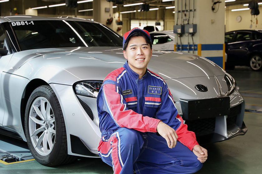 高校の授業で整備士の仕事を体験し、お客様が喜ぶ顔を見て整備士に興味を持ちました。トヨタ名古屋自動車大学校には、実習用の車両が約300台もあり実践力が身につくこと、就活サポートが万全で就職実績が高いことも決め手になりました。