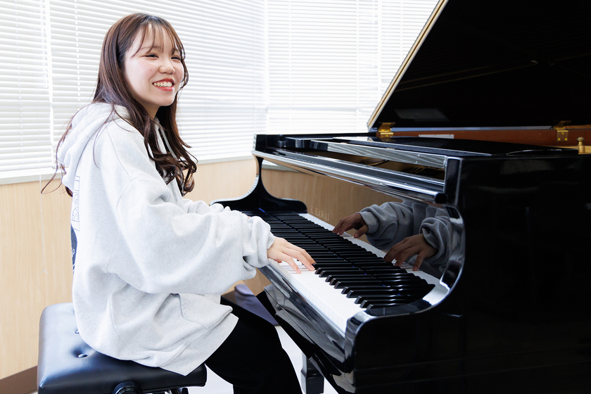 高校のときに甥っ子が生まれ、その存在を通して保育士をめざすようになりました。本校はピアノ未経験でも丁寧に指導してもらえることや、ビジネス系など幅広い資格が取得できることにひかれて、進学しました。