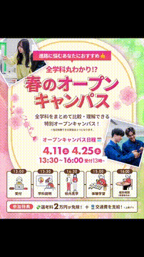 \ Jpasのオープンキャンパスに参加しよう / ◆資格・就職に強いヒミツを大公開! ◆学校の雰囲気を実感できる! ◆入試が有利になる情報をゲットできる! …