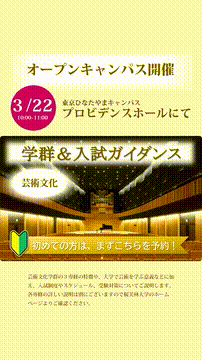 「Webオープンキャンパスサイト」では、武蔵野大学がまるわかりの動画・コンテンツを多数掲載しています! いつでもどこからでも自由に武蔵野大学をのぞいてみませ …