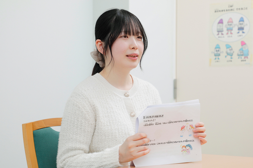 こどもの心のケアハウス 嵐山学園 勤務/心理福祉学部 心理福祉学科/2023年卒/以前から興味をもっていた心理学を本格的に学びたいと、祖母の家から通うことができる聖学院大学心理福祉学部心理福祉学科へ進学。卒論のテーマは「ステレオタイプについて」。大学卒業後、同大学大学院心理福祉学研究科修了。修論テーマは「アイデンティティについて」で、その後公認心理師の国家資格を取得し、埼玉県で唯一の情緒障碍児童短期収容施設「こどもの心のケアハウス 嵐山学園」に心理職として就職。