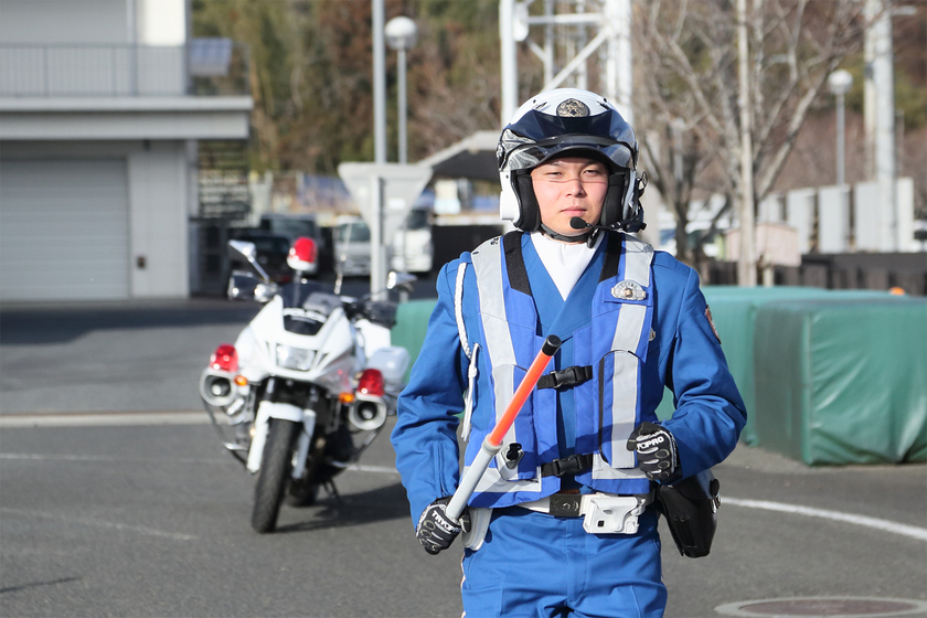 白バイに乗務して、交通指導や取り締まりをするのが主な仕事です。時には、小学校での交通安全教室なども行います。自分の行動によって、悲惨な交通事故を未然に防げることが、この仕事における最大のやりがいです。取り締まりを受けた方からすると、点数や反則金が発生するためよい気分ではないかもしれません。しかし、真摯に説明することで「事故にならなくてよかった、ありがとう」と言っていただけることがあります。 自分の活動が誰かの命を守り、一人でも多くの人が悲しい思いをしなくて済むと実感できる瞬間が、一番警察官としての誇りを感じます。