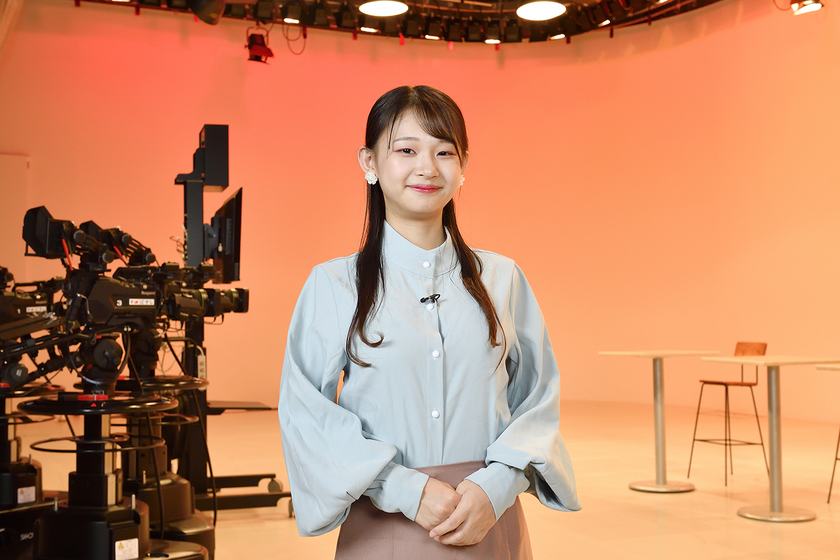 “アナ学”の先生から「素を出すように」とアドバイスを受けたことがけっこう大きかったですね。それ以来、学校で友だちと話しているときも、“力を抜いてしゃべる”ことがどんな感覚なのかを研究するようになったんです。しっかりした発声で情報を伝えながらも、視聴者のみなさんに親近感を感じてもらえるようなリポートを届けたいです。また、イベントの司会や影アナウンスなど、在学中からさまざまな現場を体験することができました。学校側が仕事を紹介してくれるから、自分で探すよりも現場に踏み込みやすいし、実際の仕事を経験するなかで、自分なりに向上心や課題を見出すことができました。