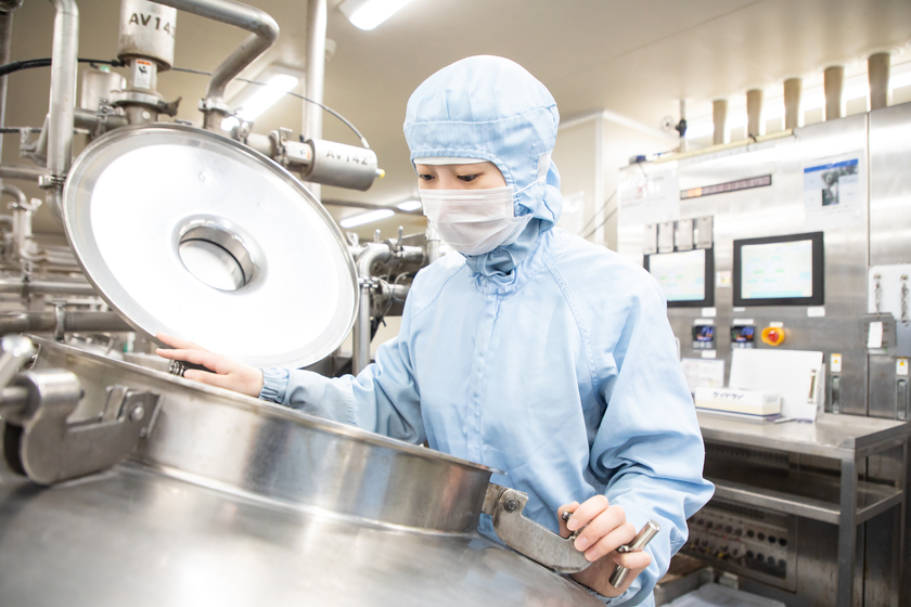 祖父のお見舞いで病院に行き、残食が多いのを見て、栄養バランスがよくても食べてもらえなければ意味がないと思い管理栄養士を目指しました。アルバイトやサークル活動でも多くの食材が廃棄されているのを目の当たりにし、食品ロス削減への思いが強くなったのです。安全かつおいしいものを届けるために廃棄食材が出てしまうことはあっても、ロス削減のために何かできないかを考えていた時に出会ったのが、キユーピー株式会社のファインケミカル事業でした。食材を食べるだけでなく、さまざまな成分まで有効活用しているところに魅力を感じて入社し、想像より人の手での作業が多いことに驚きながらも、充実した毎日を送っています。