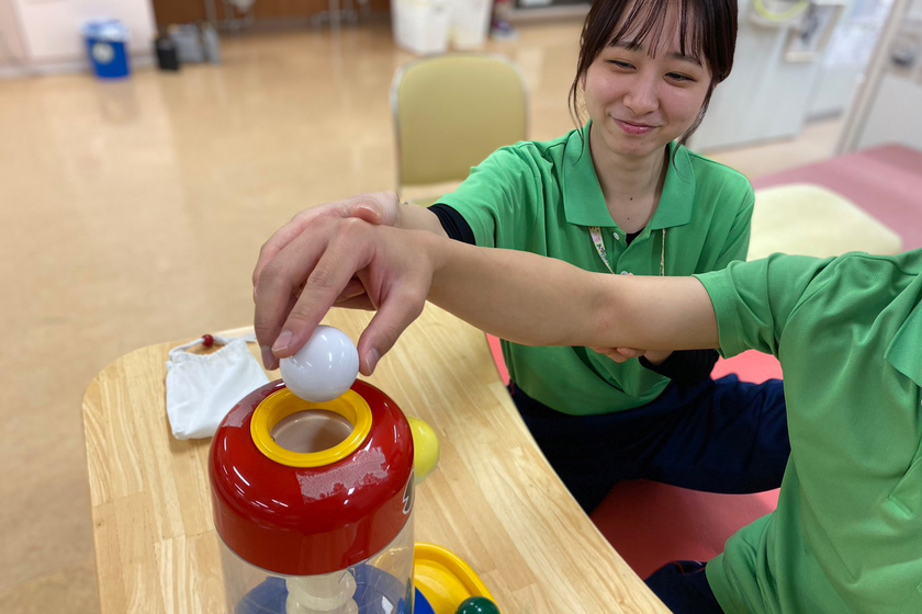 ご利用者様の生活が少しでも良い方向に変わる瞬間に立ち会えることが、この仕事の魅力です。仕事をするうえで心がけているのは、常に明るく笑顔で接すること。そしてリハビリテーションの時間が前向きで、楽しいものになるように意識しています。特に印象に残っているエピソードは、インスタントラーメンが好きな方を担当した時のこと。ご家族と一緒に食べることを目標に設定し、リハビリテーション実施。むせることなく安全に食べられるよう、頭のコントロール練習をした結果、美味しそうにラーメンを食べるご利用者様の笑顔を見ることができたことは、今も忘れられない思い出となっています。
