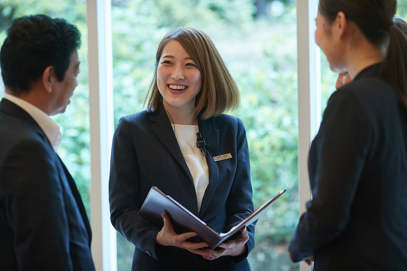 アーバンリゾートウエディングをテーマに、多彩でスタイリッシュな施設でのウエディングを実現するハイアット リージェンシー 大阪。ここが私の職場です。ひとつの結婚式を挙げるのには準備期間も含めると実に多くのスタッフや部署が関わっていますし、新郎新婦様の数だけ思いがある。だからこそやりがいのある仕事です。喜びの瞬間もたくさんあり、当日を迎えられた新郎新婦様のほっとしたお顔や、ゲストの笑顔を見ると報われます。直接お礼を言われると達成感も感じますね。憧れの世界で働く喜びを胸に、今後もスキルアップをしていきたいです。