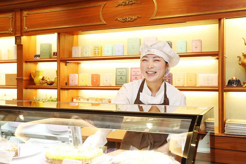 フランス菓子の老舗「カフェタナカ」で、店頭に並ぶケーキや焼き菓子の計量・仕込み・仕上げなどを担当しています。「カフェタナカ」は、可愛いクッキー缶や新しいフレーバーにチャレンジするような話題性があり全国からお客様が集まる人気店。歴史も感じられるフランス菓子の老舗店で働けることがとても嬉しく毎日が充実しています。忙しい日々に追われている中で、昇給したり新しい仕込みを教えてもらえた時、頑張っていて良かったと思います。こちらがどれだけ忙しくても、お客様にとっては、ここに来た日が“特別な1日”なので、一つひとつ丁寧な仕事を心がけ、お客さまに寄り添った仕事をすることを大切にしています。