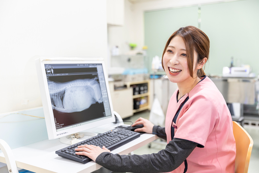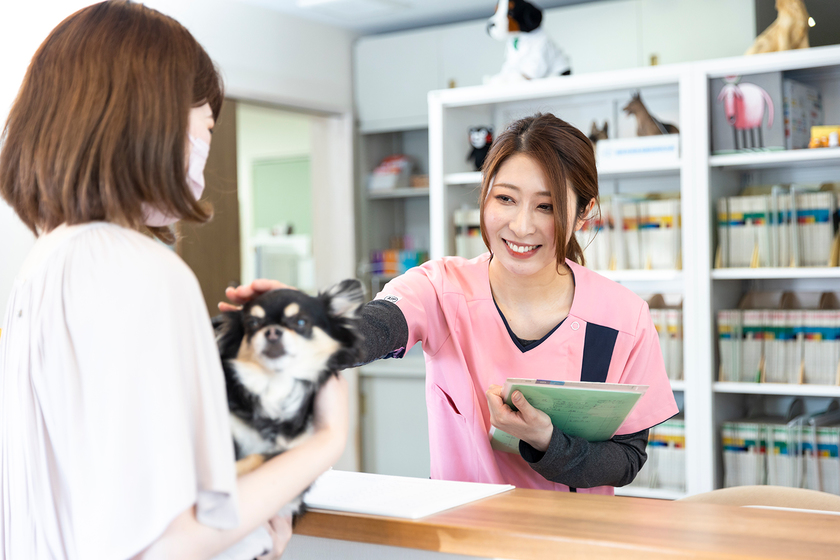 信頼される動物看護師になれるよう心掛けているのは、入院している動物たちの体調変化を見逃さないことと、通院している動物たちの不安を和らげるよう声掛けをすること。そして、飼い主様に寄り添ったコミュニケーションを大切にすることです。また今後は、愛玩動物看護師として国家資格化されます。資格取得に向けた勉強にも力を入れていきたいと思っています。この仕事を目指す皆さんも、ぜひ一緒に頑張りましょう!